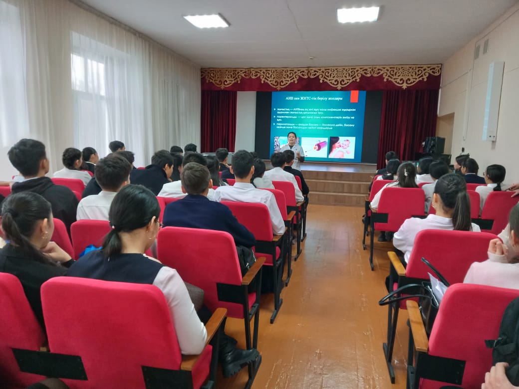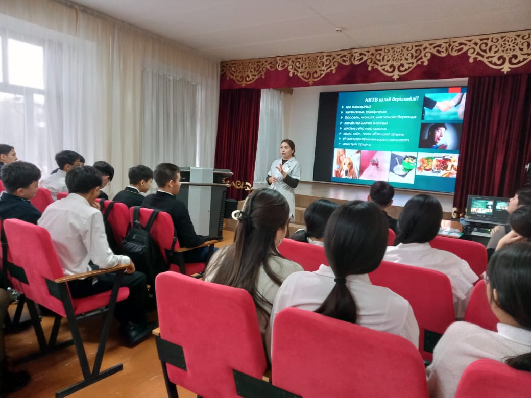 Бүгін мектебімізде ШҚО ДСБ "ШҚО ЖИТС алдын алу және күрес жөніндегі орталығы» мекемесінің эпидемиолог- бас дәрігері Аукенова Аяулым Еркиновна 8"А","Б","В".10"Б" сынып оқушыларымен кездесу өткізді. Кездесу барысында ЖИТС-тің алдын алу, денсаулықты сақтау және жауапкершілікті мінез-құлық қалыптастыру мәселелері талқыланып, оқушылардың сұрақтарына жауап берді. Жас ұрпақтың денсаулығын нығайтуға және олардың болашағын қорғауға бағытталған дәріс жастардың денсаулық туралы сауатын арттырып, олардың жауапкершілік сезімін қалыптастыруға ықпал етті. Осындай ақпараттық жұмыстардың маңыздылығын ескере отырып, қоғамда дені сау ұрпақ тәрбиелеуге бірге үлес қосайық!