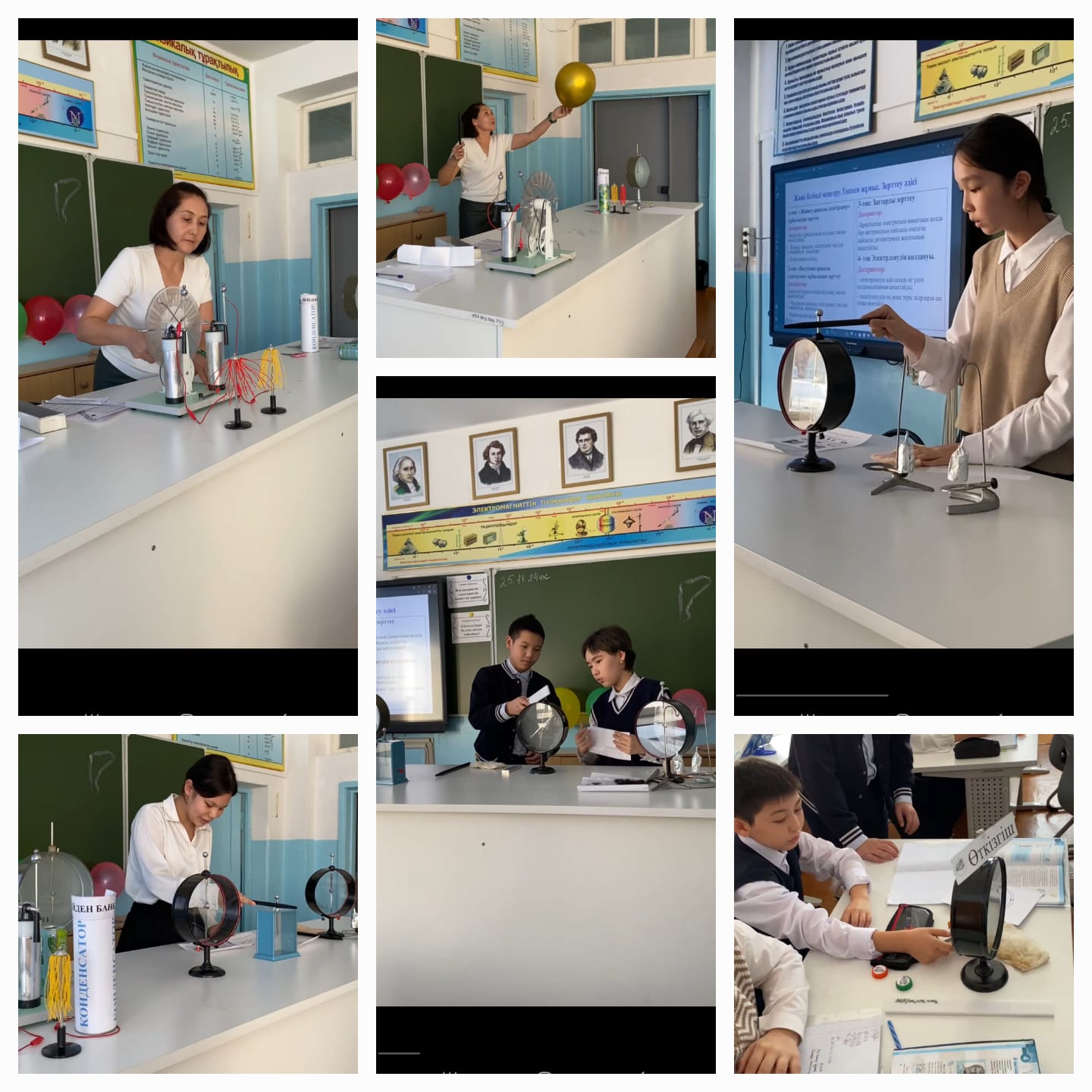 Тақырып: Электр заряды. Денелердің электрленуі. Өткізгіштер мен диэлектриктер тақырыбында 8 "Б" сынып оқушыларына ашық сабақ өткізілді. Сабақ жаңа білім зерттеу әдісімен меңгерілді. Сабақ Lumio платформасымен жоспарланды.