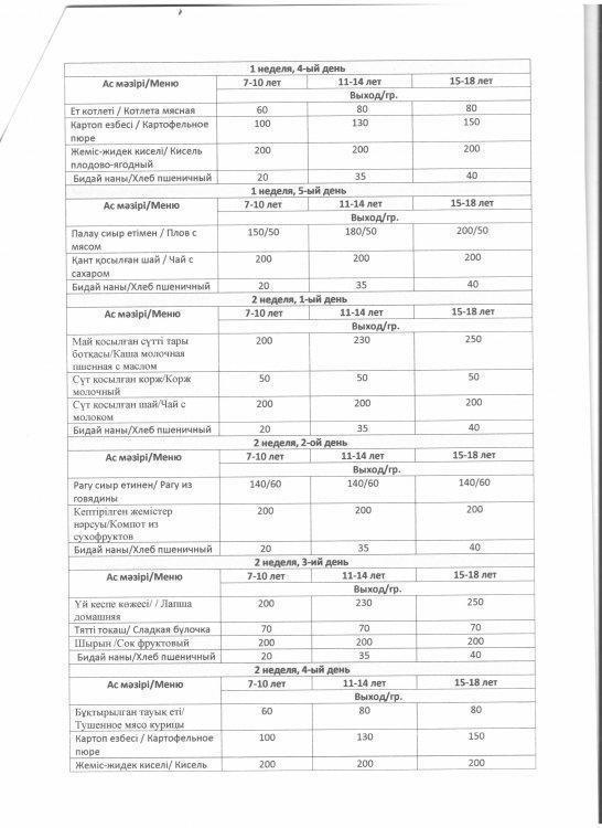 2 апталық ас мәзірі » Шығыс Қазақстан облысы білім басқармасы Өскемен қаласы бойынша білім бөлімінің « Қ.Нұрғалиев атындағы №43 мектеп-лицейі» КММ