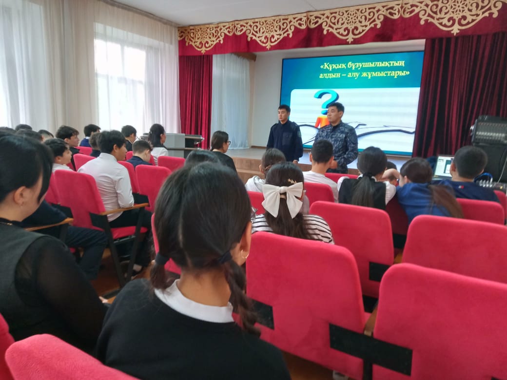 Кездесу барысында оқушыларға заң алдындағы жауапкершілік, қауіпсіз жүріс-тұрыс ережелері, киберқауіпсіздік және одан сақтану жолдары, зиянды әдеттердің салдары туралы кең көлемде мәлімет берілді.